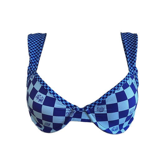 Roscoe Wide Strap Underwire Top With Tie Back - Sea Friends Blue