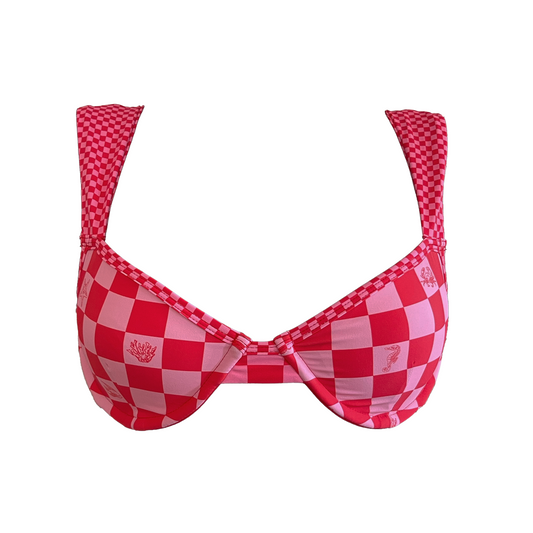 Roscoe Wide Strap Underwire Top With Tie Back - Sea Friends Pink/Red
